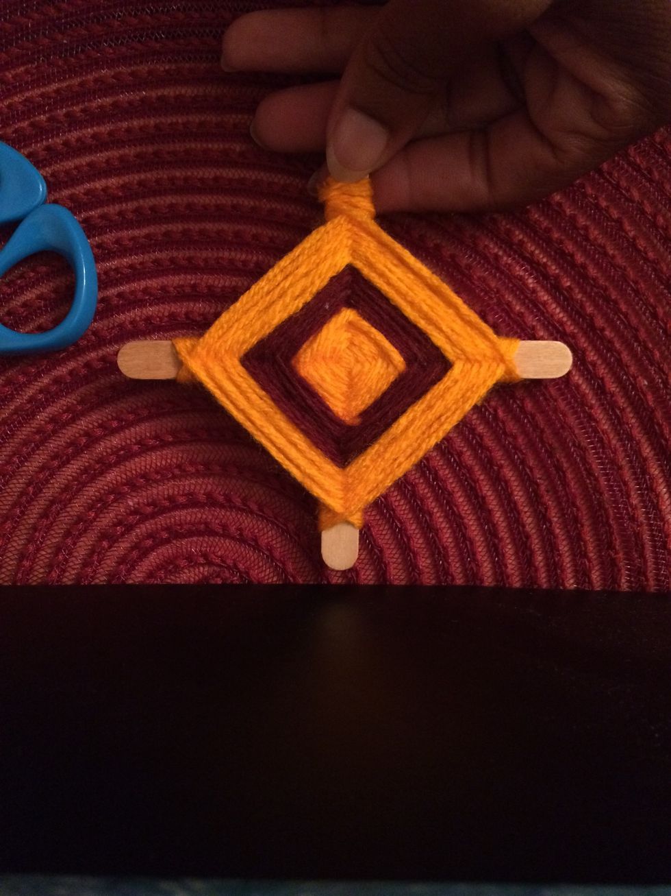 5. Next wrap the yarn around the sticks going in the opposite direction. It will make an 'x'.
