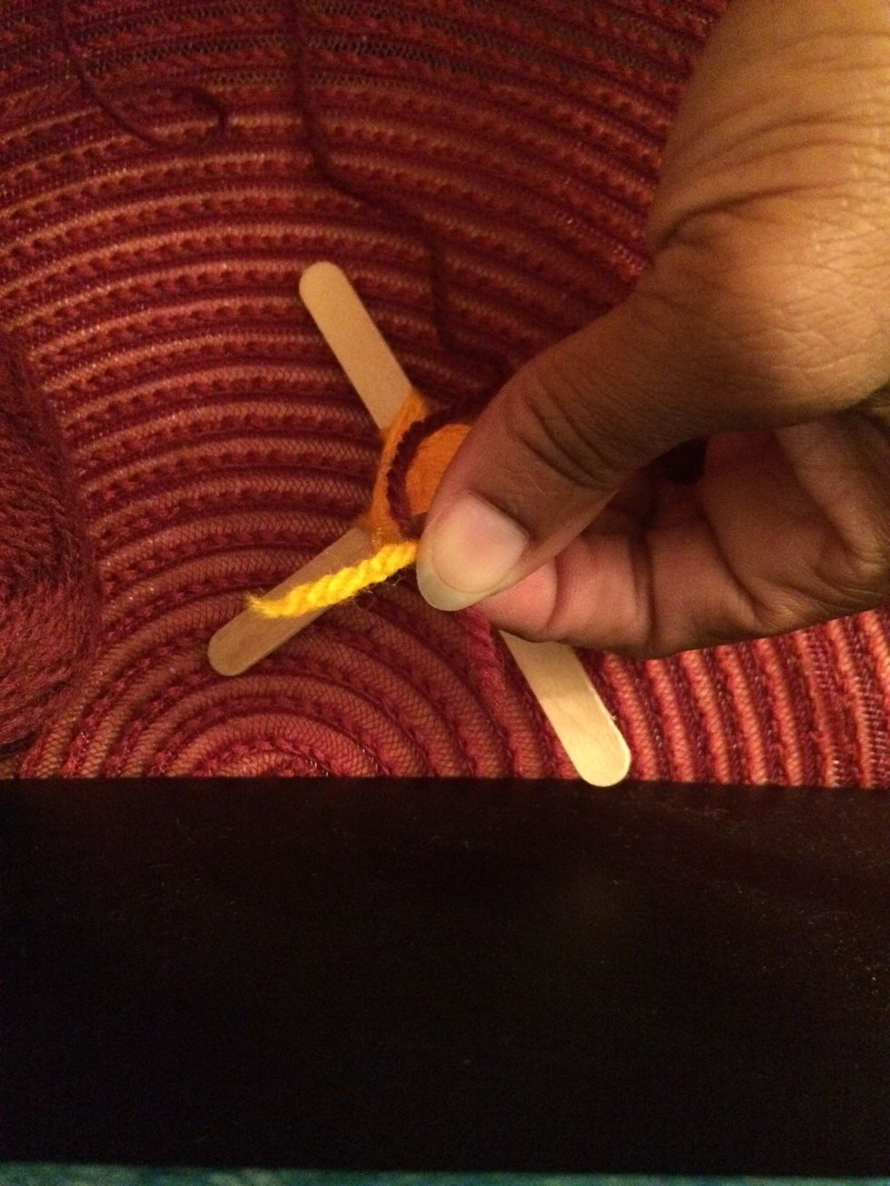 6. Make sure to wrap the yarn around tightly so that the sticks will not loosen.