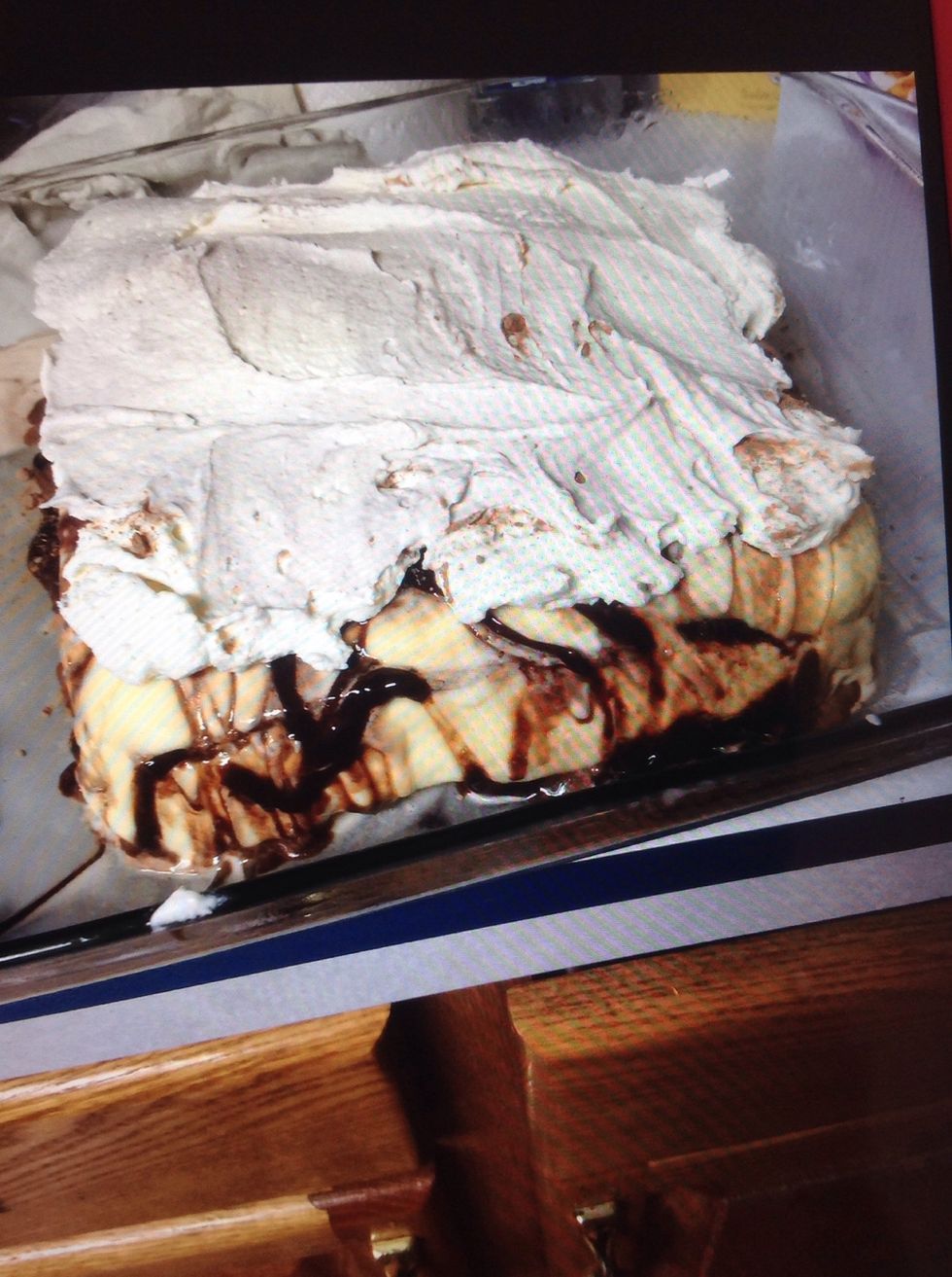 Drizzle with 1/4 cup fudge sauce and freeze 15 min.