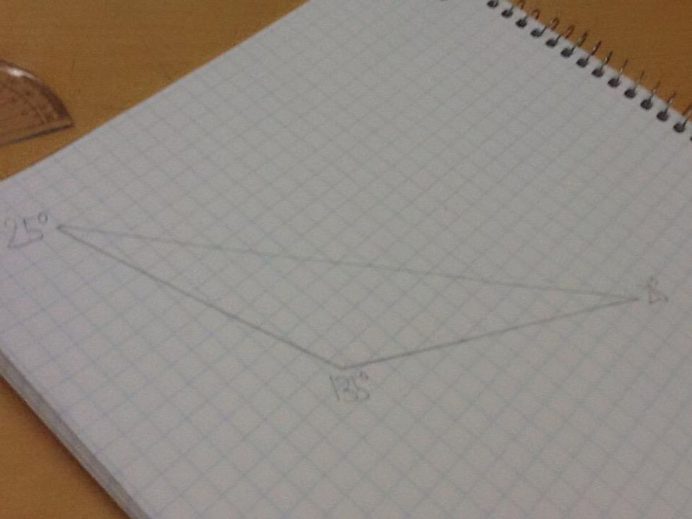 Link up the bottom of the protractor with your line see where the other lines degree is