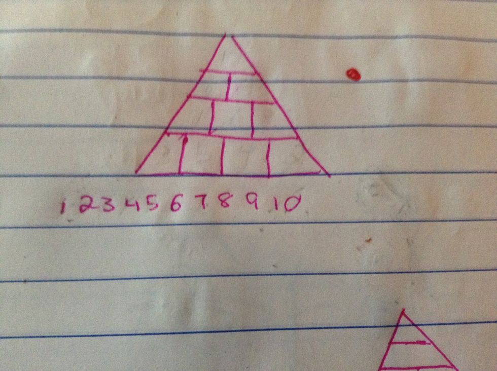 Add numbers 1-10 under the pyramid.