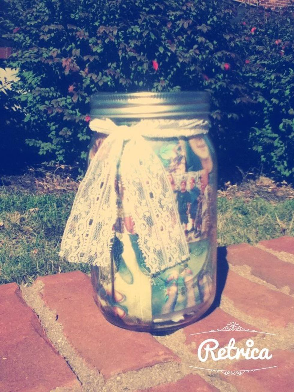 I plugged my phone and ipod up to my computer and printed out photos that I wanted to use as apart of the appearance of the mason jar. This is optional but I felt it made my DIY more unique & special.