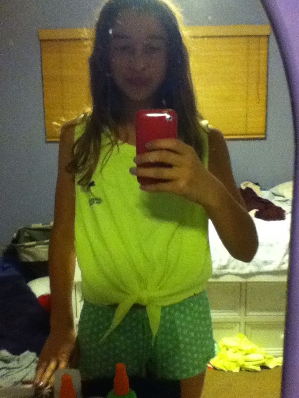 Then tie the front into a knott and you're done! And I know my shorts I kinda weird but they are my PJ shorts. PS: Malia don't make fun of me for this ok?!