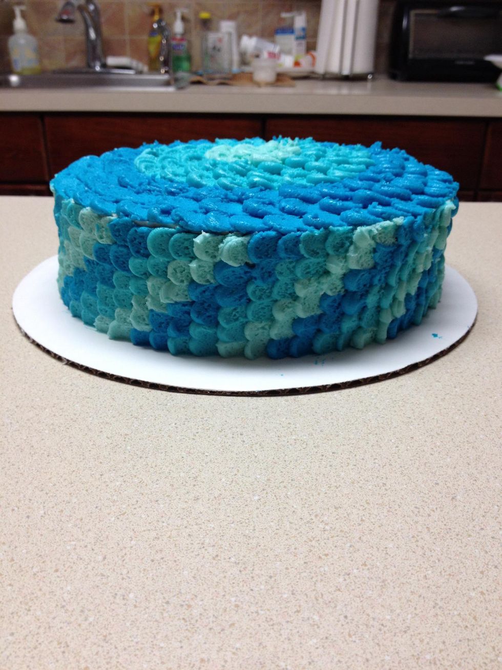 For the top, just pipe three circles of each color using the same pulling technique with the knife