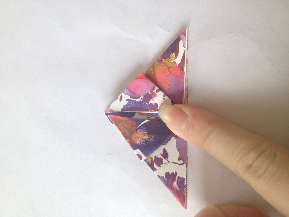 Place your triangle on its back, take the to points at the bottom of the triangle and fold the two points towards the top point