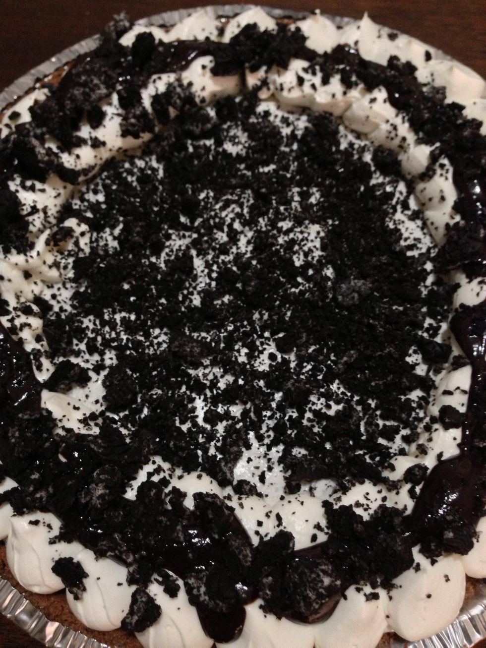Once the cookies are evenly distributed. Add this to the chocolate covered pie crust.