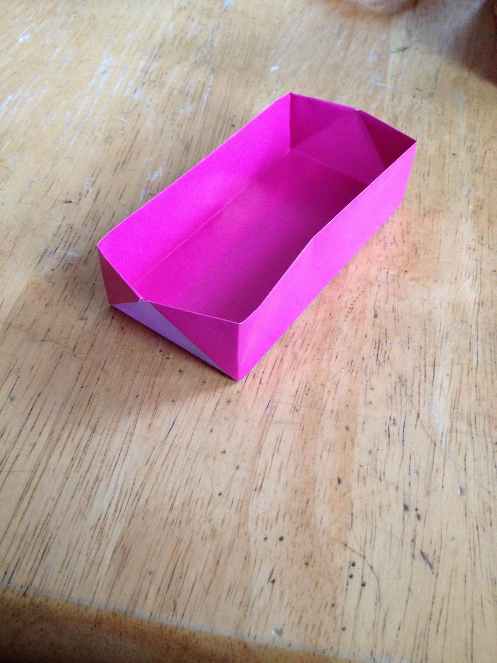 Do this to both ends. Here is the rectangular bowl from a square paper. If you fold from a rectangle, the end result is square. Makes a fun snack bowl!