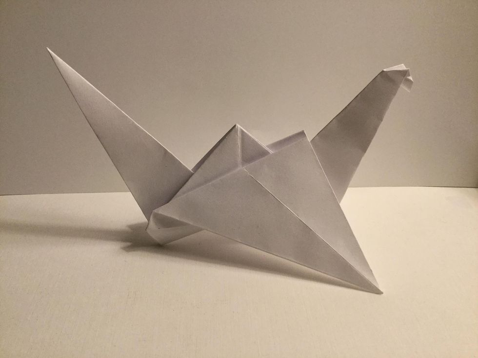Chose a side to fold down a small part in the very center of the triangle to create a head