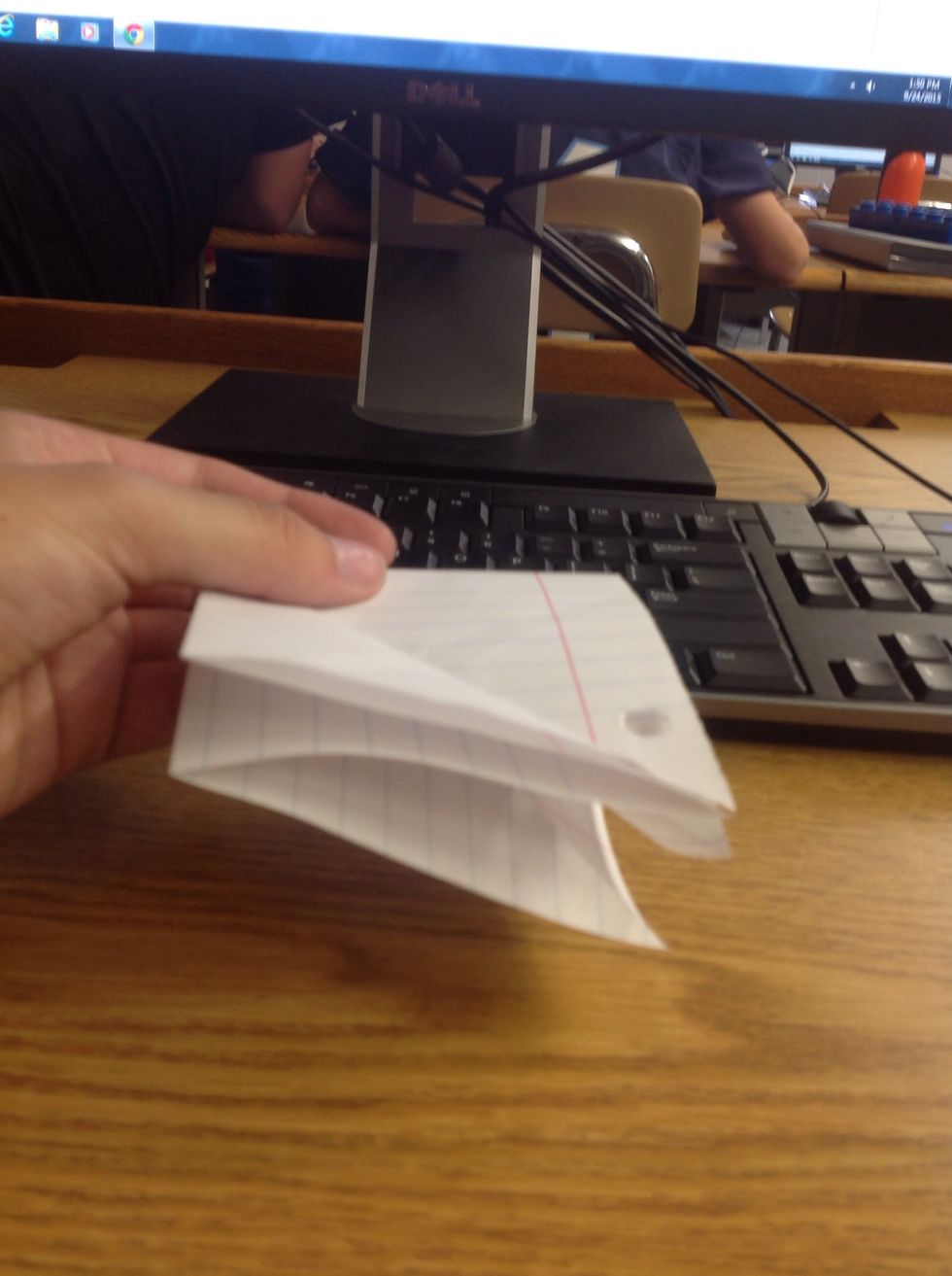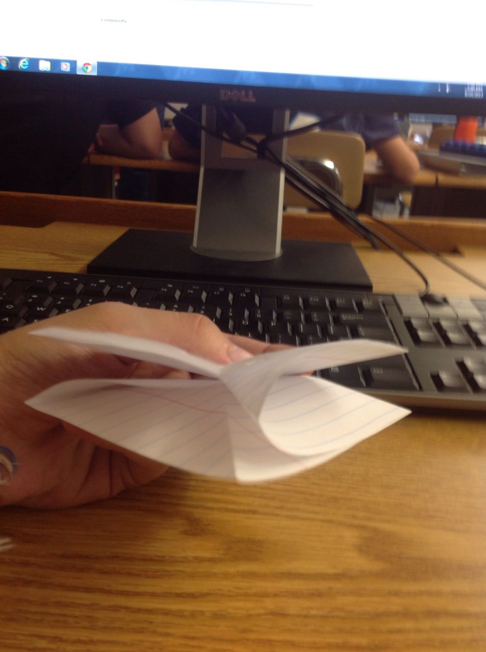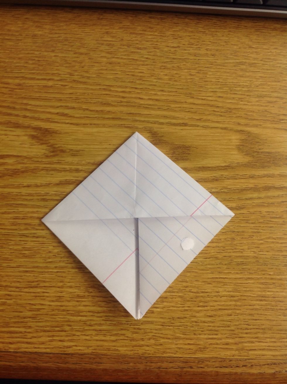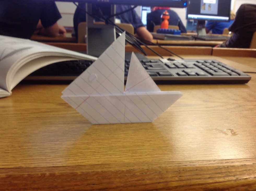 Fold it partially down, but don't crease it, as it'll be the stand for the sailboat.