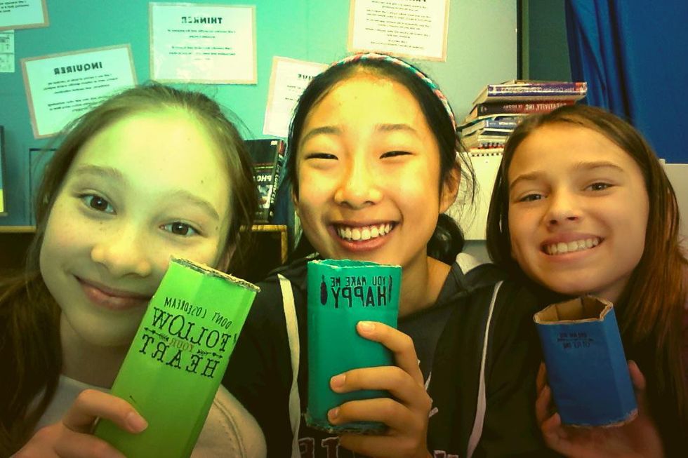 Glue your desired stickers onto each of the cardboard tubes.