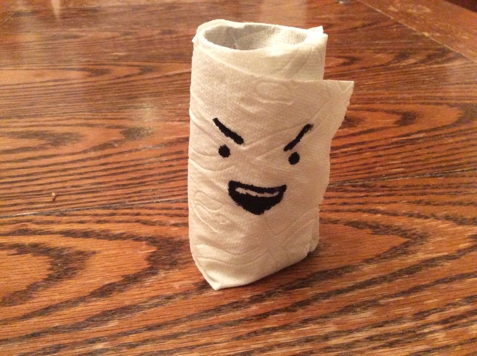 Wrap the rest of the TP around the tube loosely and randomly for the mummified effect