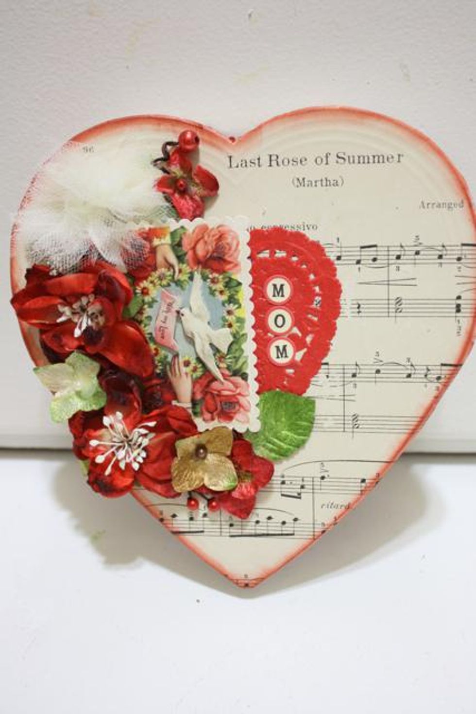 Pick a piece of decorative paper and trace around the heart. Cut out with scissors