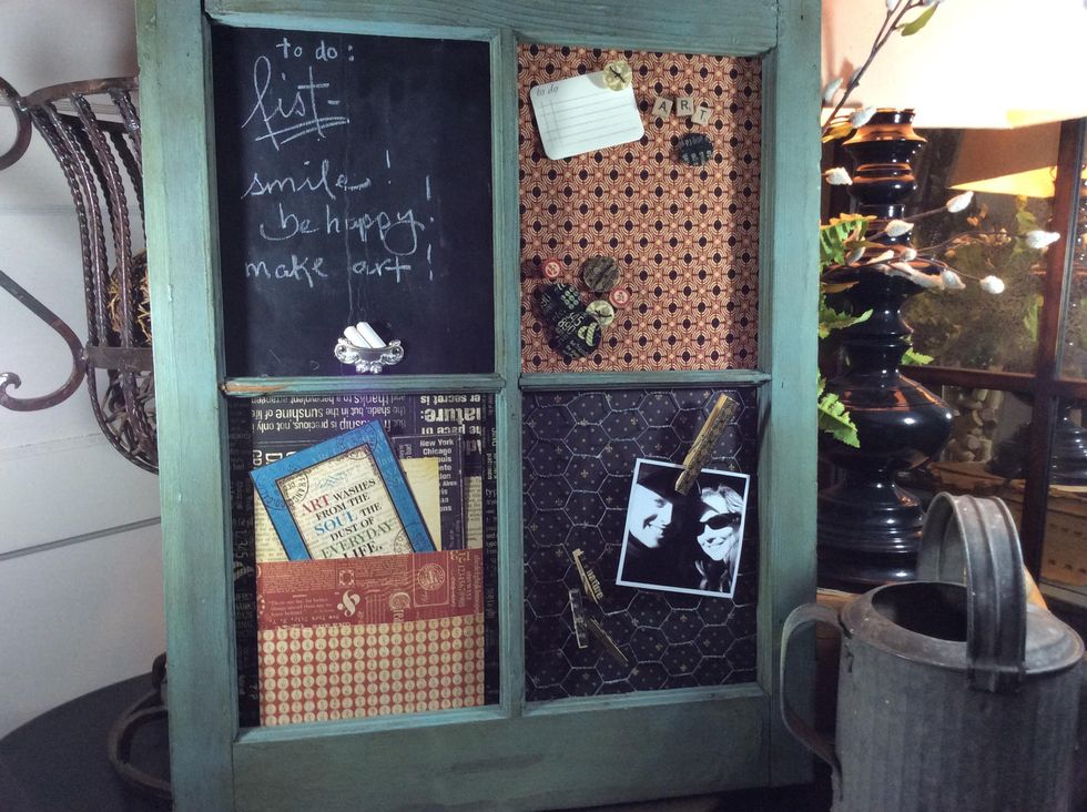 Find an old window frame. Vintage, antique and re-building stores are great sources. You will want to find frames with at least 4 panes. If desired, paint your frame to match your decor.