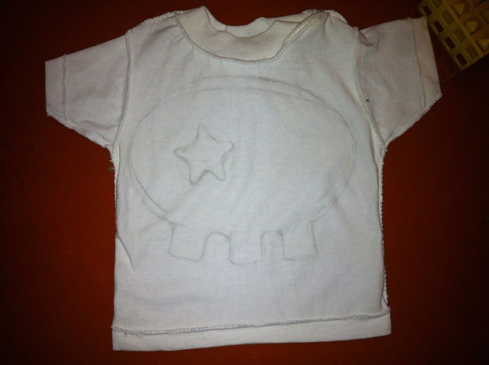 Place your material face-down and draw your design. I did a freehand sketch but you can use a stencil, if you so please. If your design involves text be sure to draw it backwards, as I did above.