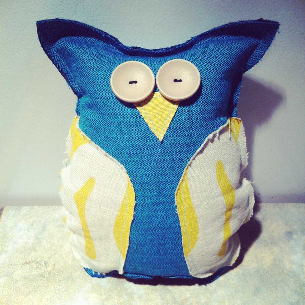 You can make all sorts of stuffies out of fabric samples & junky buttons like this owl.