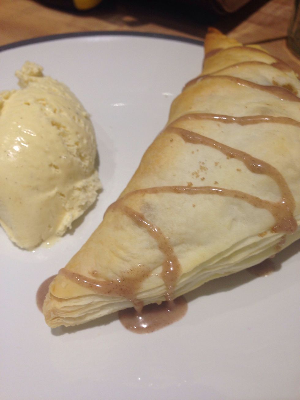 Mix together the peeled and diced apple, flour, cinnamon, sugar with a teaspoon of water