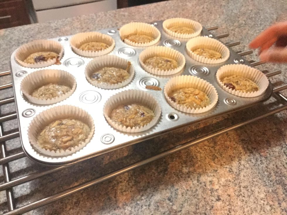 After the ingredients are well mixed, get out a cupcake or muffin tray.