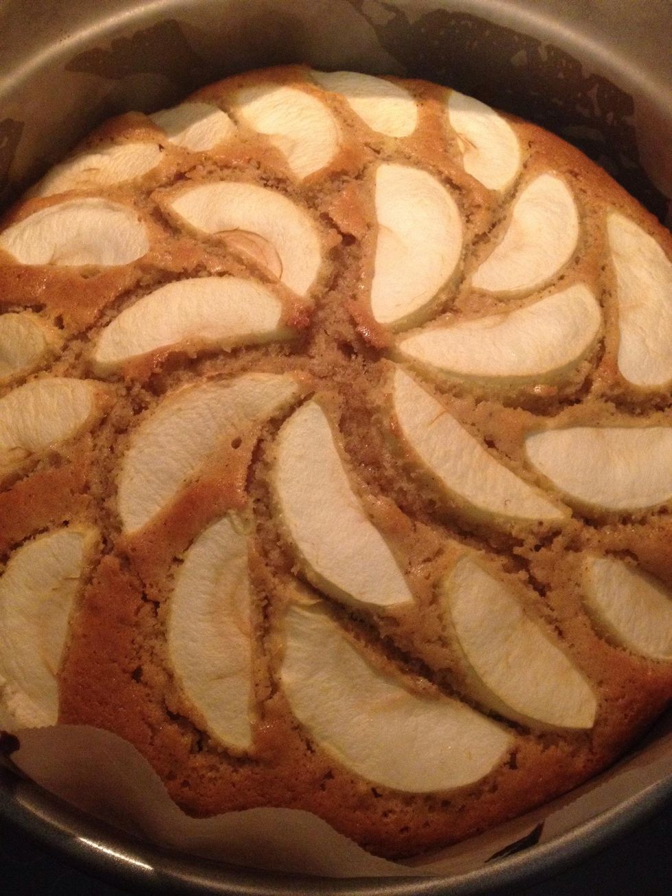 I used a cheesecake pan because I can line it and remove it very quicklyMix all your ingredientsWash, core and slice your applesArrange your apples on top of your breadBake a 374 for 1 hourEnjoy
