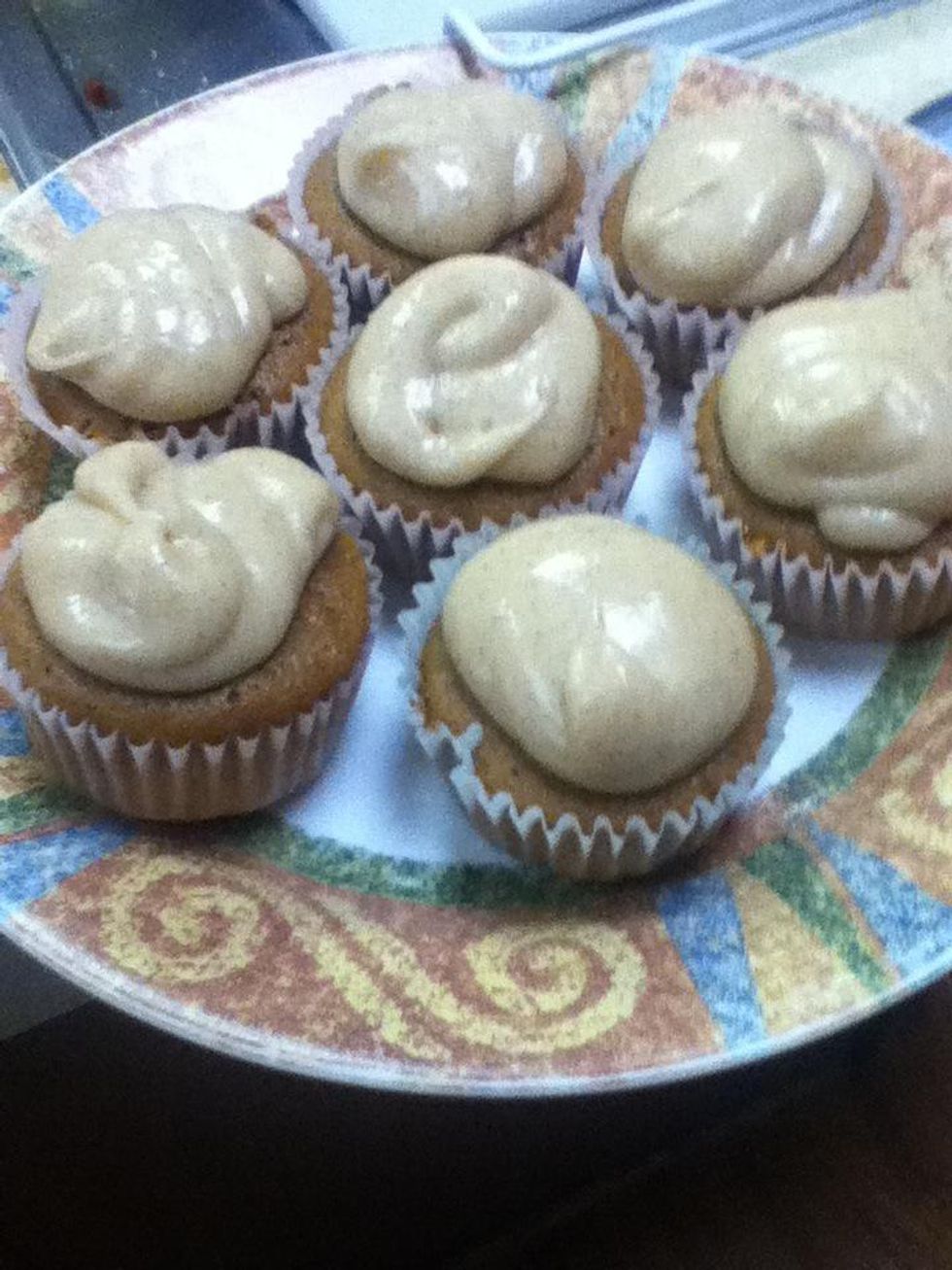 Here you can do 1 of 3 things, use a piping bag and frost them. Just frost them with a knife or put the frosting in a ziploc bag an cut off the corner and make that a piping bag.