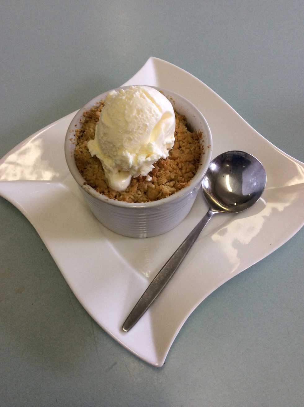 This is all the stuff you needCut the rhubarb into small pieces and cook itCook the rhubarb and apple in the saucepanCooking the rhubarb and the appleMixing the butter coconut and brown sugar with flourThis is how it looked when it was finished