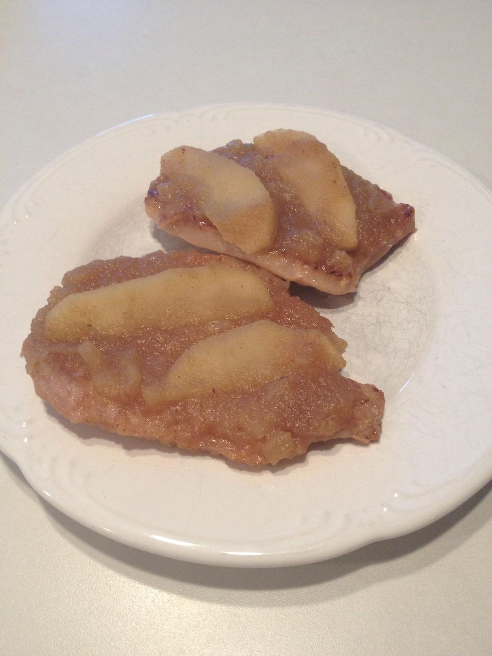 Cover each pork chop with apple mixture and arrange apple slices neatly on top.