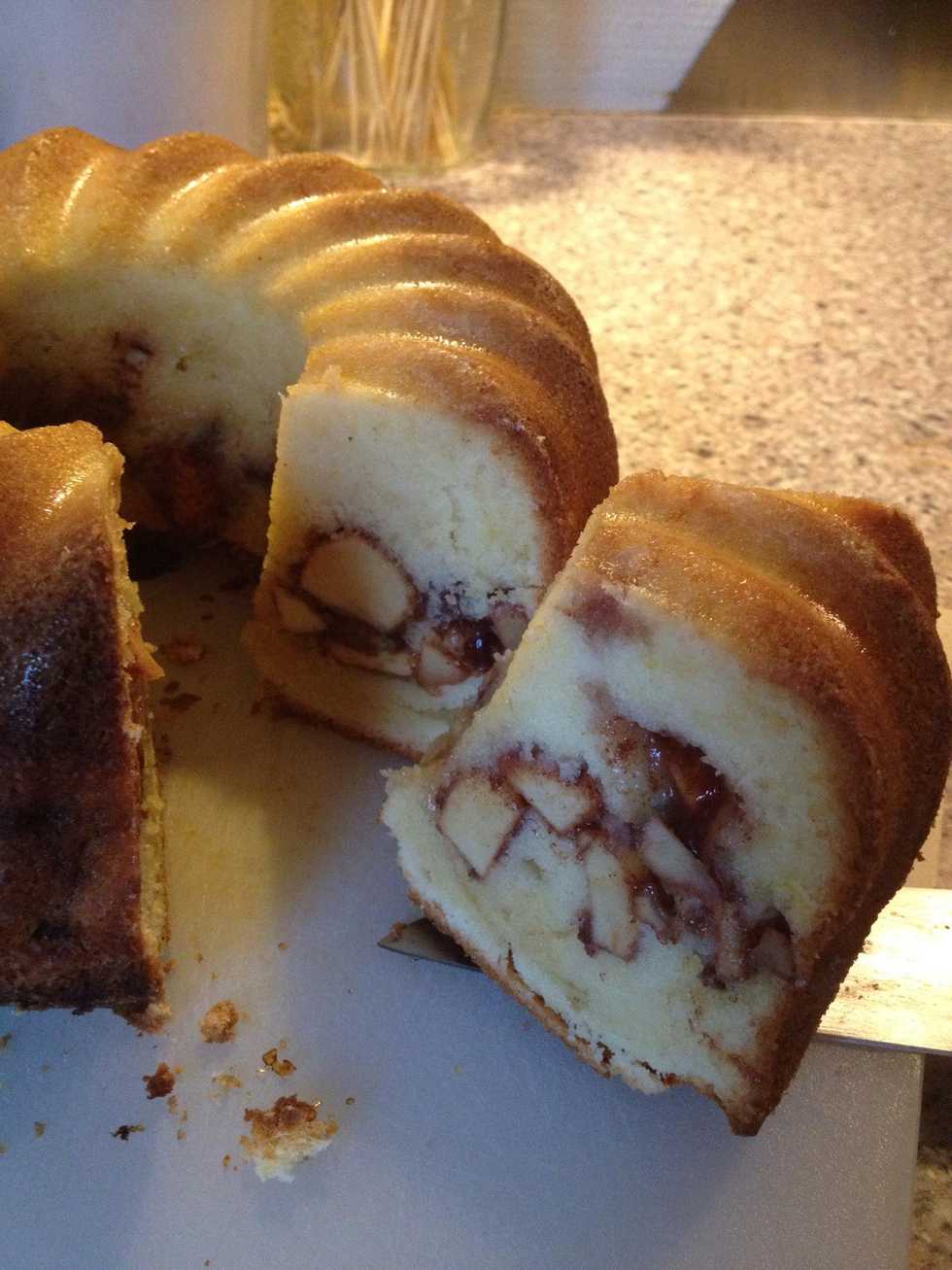 Baked, you can see the sugar sparkle and the cake around the apple filling is a bit moist and lovely. The cake will keep moist in a airtight tin for a week.