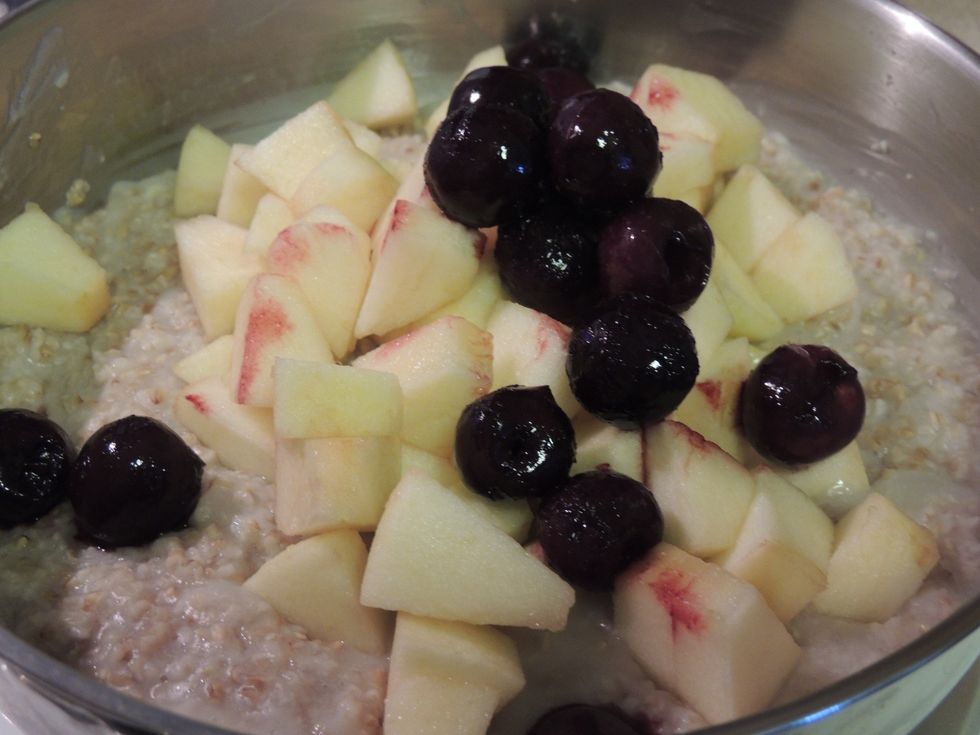 Fruit options! Have fun! You can also add more fresh fruit when you eat it. An additional topping.