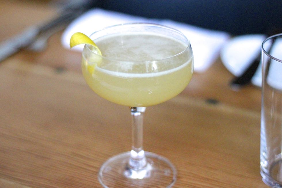 Add the following to a cocktail shaker: lemon juice