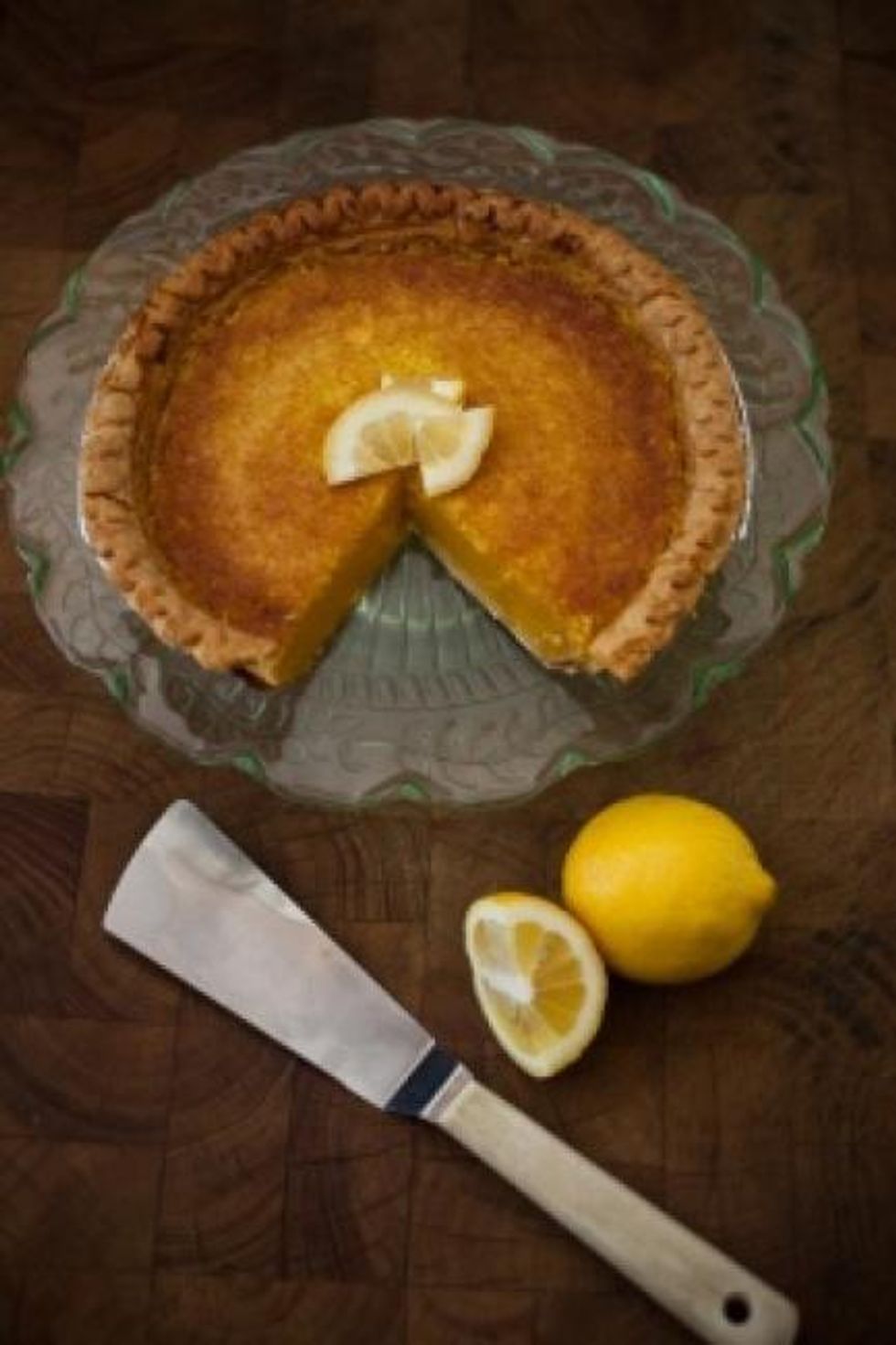 Pour into unbaked piecrust. Bake at 350 degrees for about 40 minutes. If crust becomes too brown, cover gently with foil and finish baking.