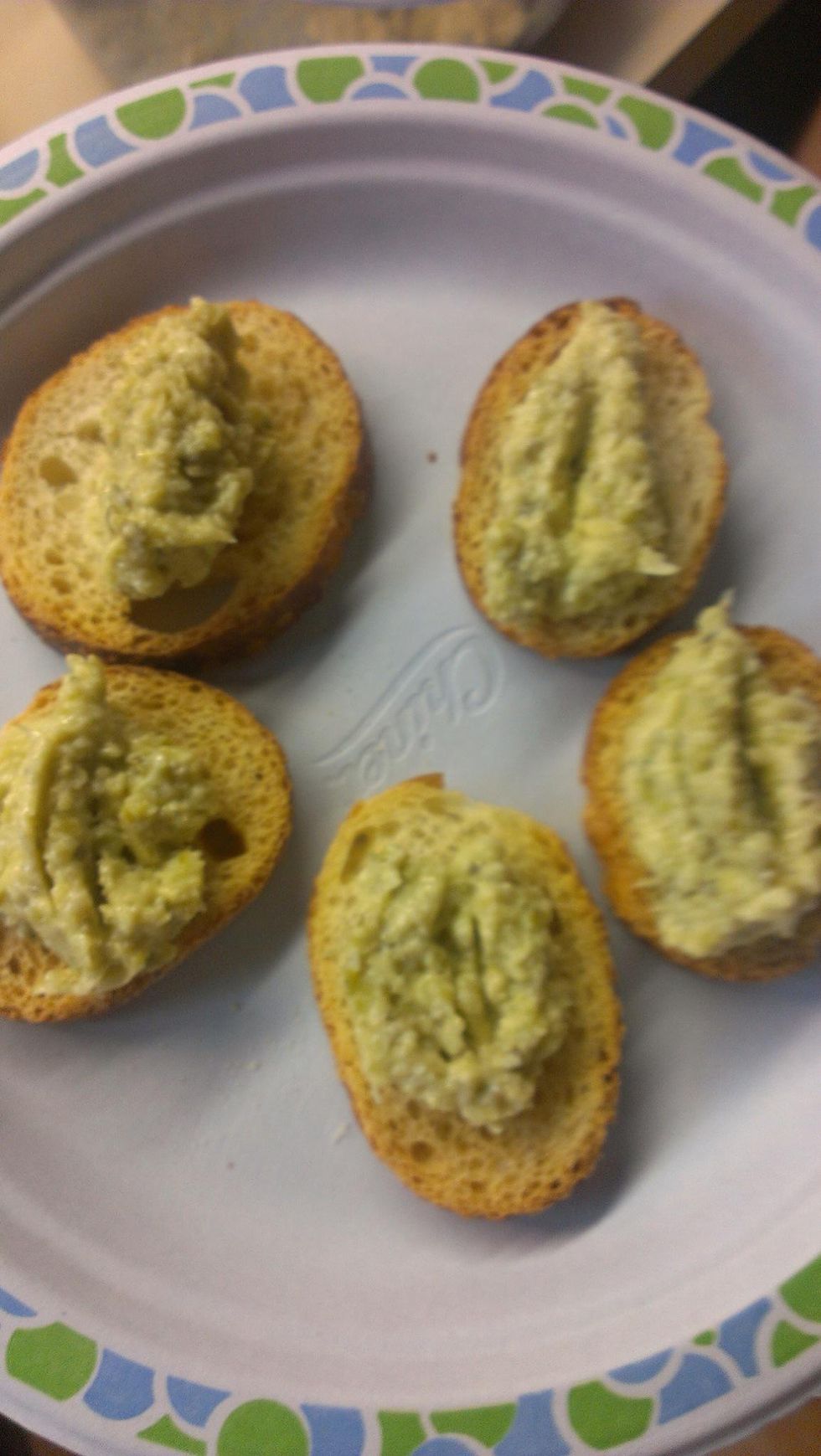 Serve on crostini bread. Enjoy :) I used crostini bread but feel free to use any other type of crusty/crunchy bread that you can heat up in the oven.