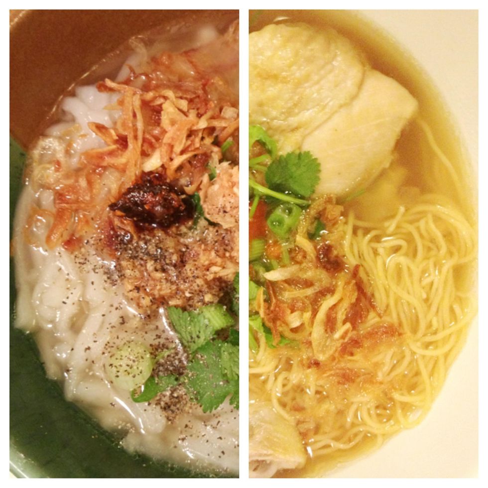 This is a variation to Lao Chicken noodle soup(kow piek) recipe that I tweaked for my own taste. I love the gummy rice noodles while my guy prefers the wonton noodle. It cures hangovers and sickness.