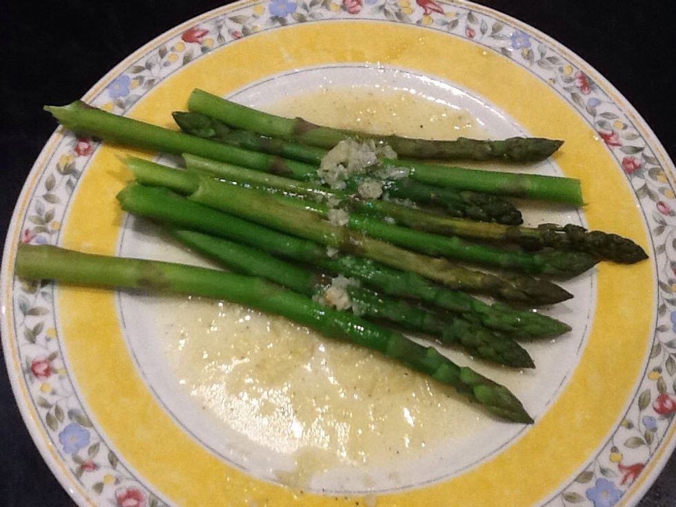 This is the finished product pour the dressing on top of the well cooked asparagus ENJOY :)