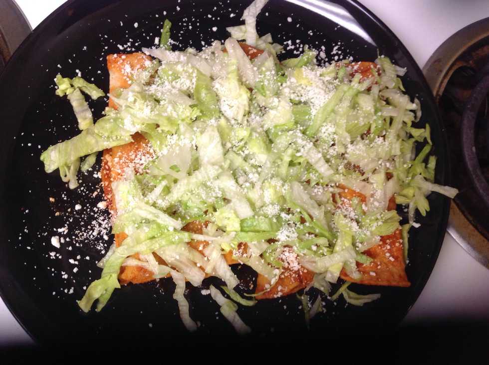 You then take the lettuce that was set aside earlier and top your now finished enchiladas. And enjoy......