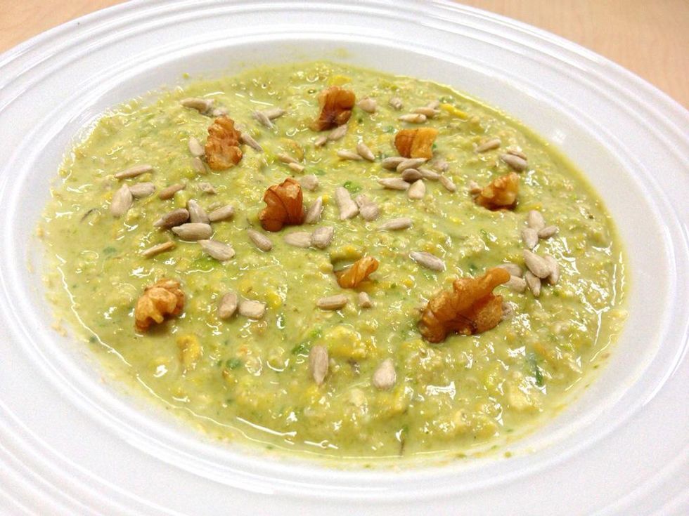 And it's done. Garnish with shn-flower seeds and walnuts. Happy tummy in the morning! Enjoy