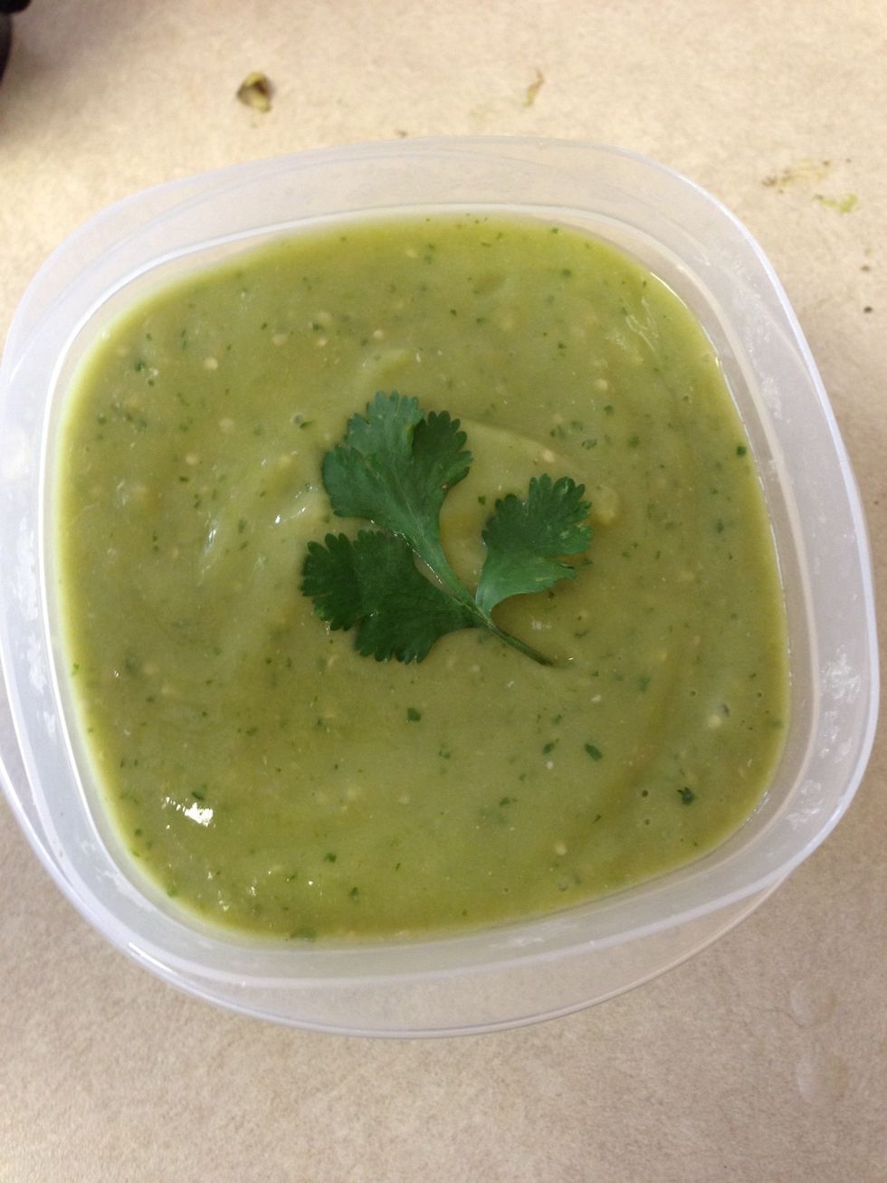 Boil 6 green tomatoes or tomatillos with one chile Serrano or jalapaƱo depending how hot u want it