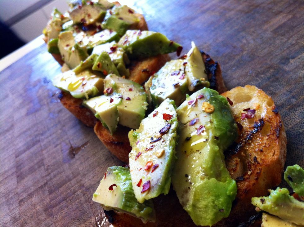 Next is to prep your avocado. Remove the skin and slice into manageable chunks, small enough to pile on your slices of toast