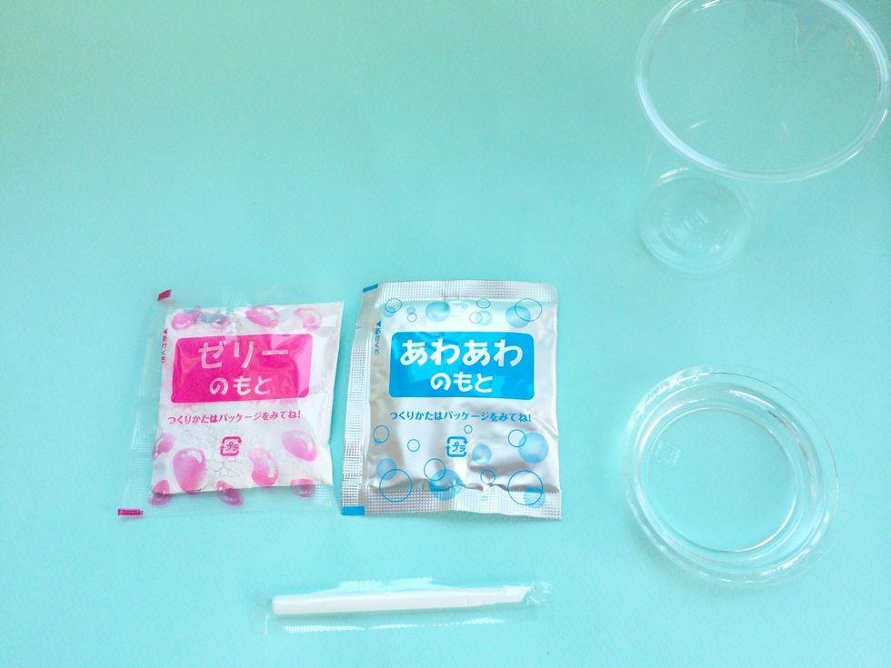 Contents: Clear Cup, Lid, PURPLE Packet Jelly Mix, BLUE Pack Foam Mix, Straw