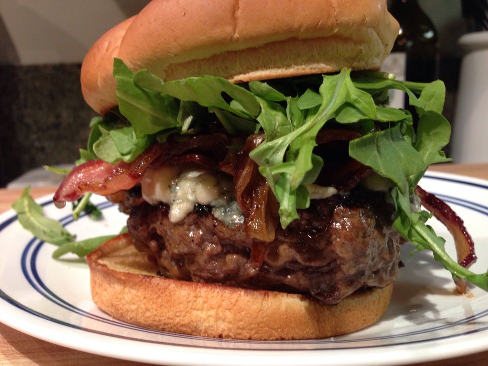 This burger is my version of the Father's Office burger, so if blue cheese, arugula and onions aren't your ideal burger toppings, this may not be up your ally.