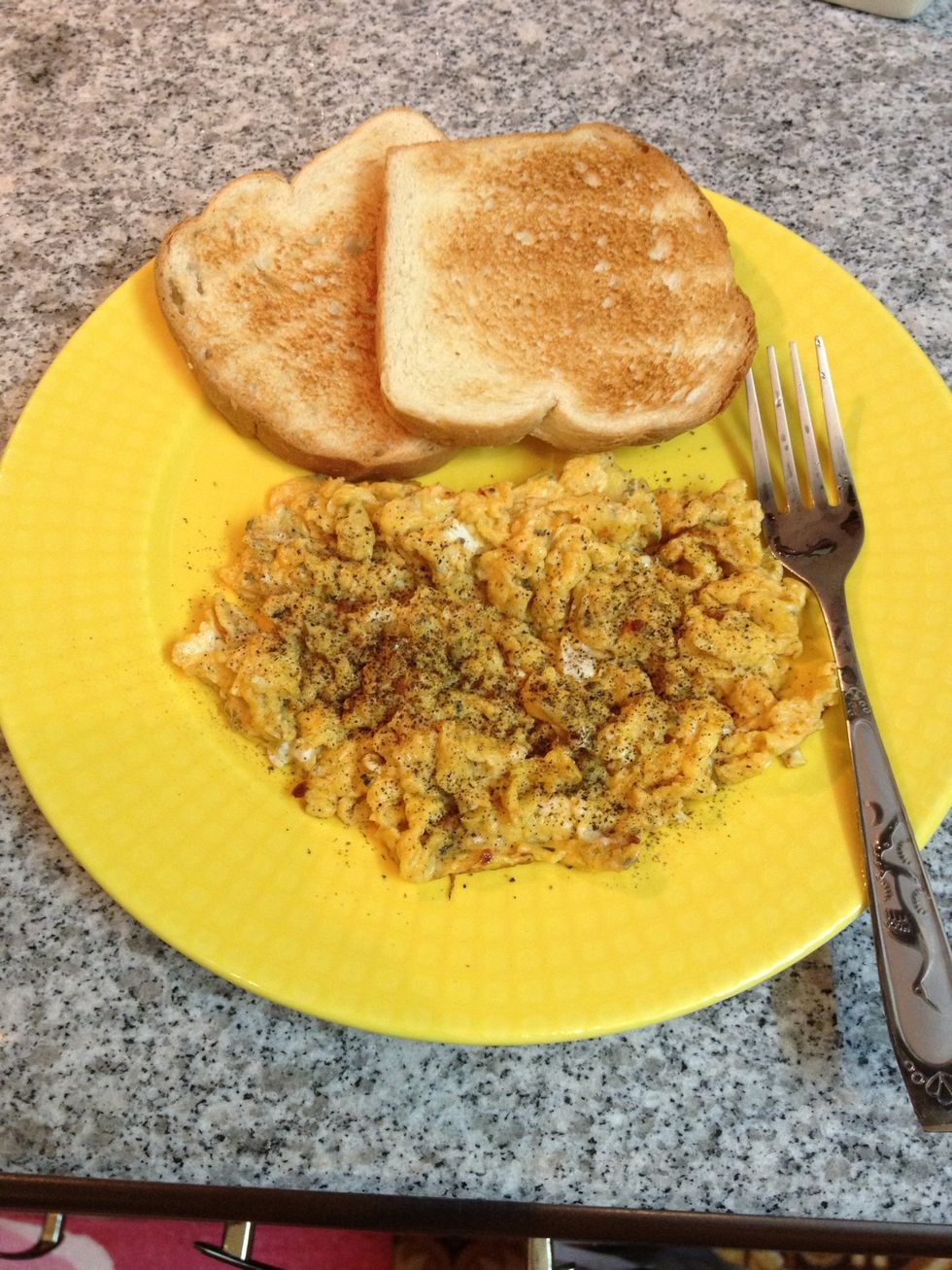 Serve with black pepper and toast.