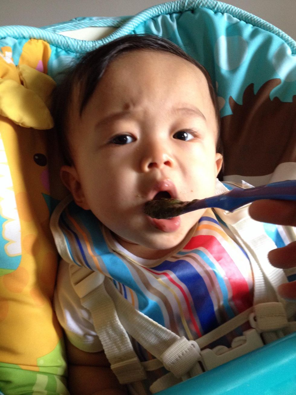 My baby eats stage 3 food therefore I add the peas after.