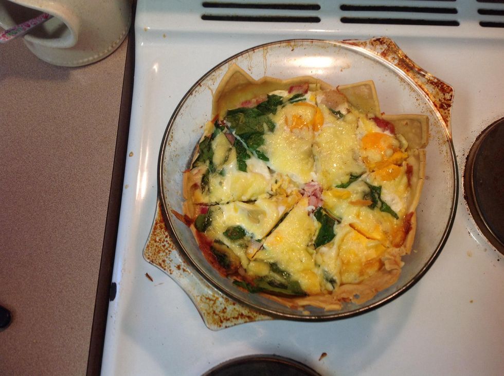 Put in oven for 20-30 minutes or until egg is cooked to find out if the egg is cooked put a fork in the egg if it comes out clear it's cooked if not put on for another 5-10 minutes keep an eye on it