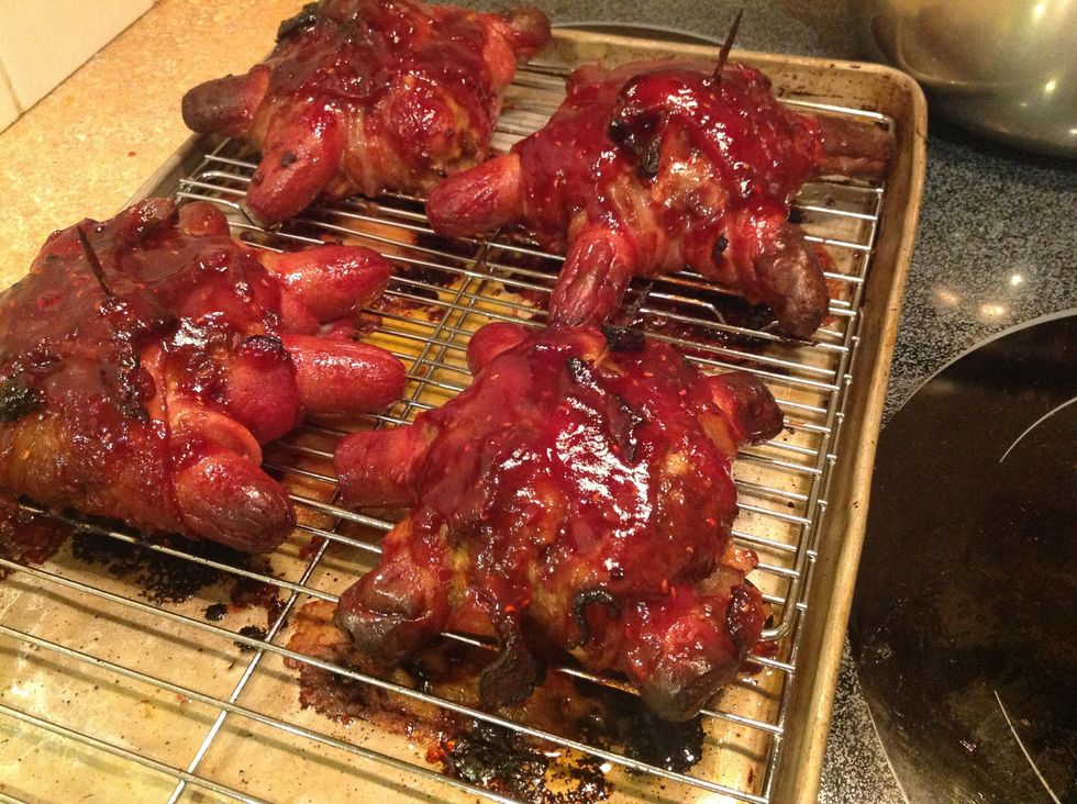 Preheat the oven to 400-425 degrees. Place the turtles on a rack and pan. Baste with the sauce and place in the oven.