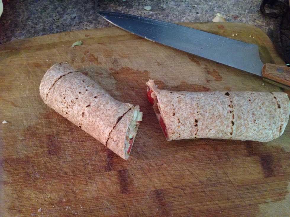 Heat tortilla in micro for 10 sec or in skillet over low heat for a couple seconds each side.