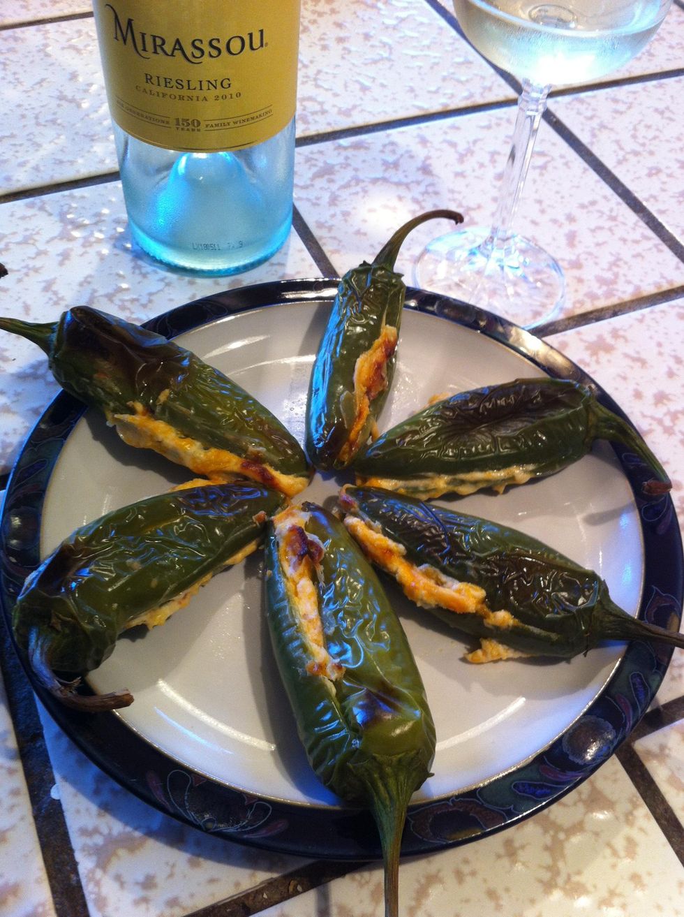 Bake at 450 degree in oven until cheese melts or peppers start to brown.