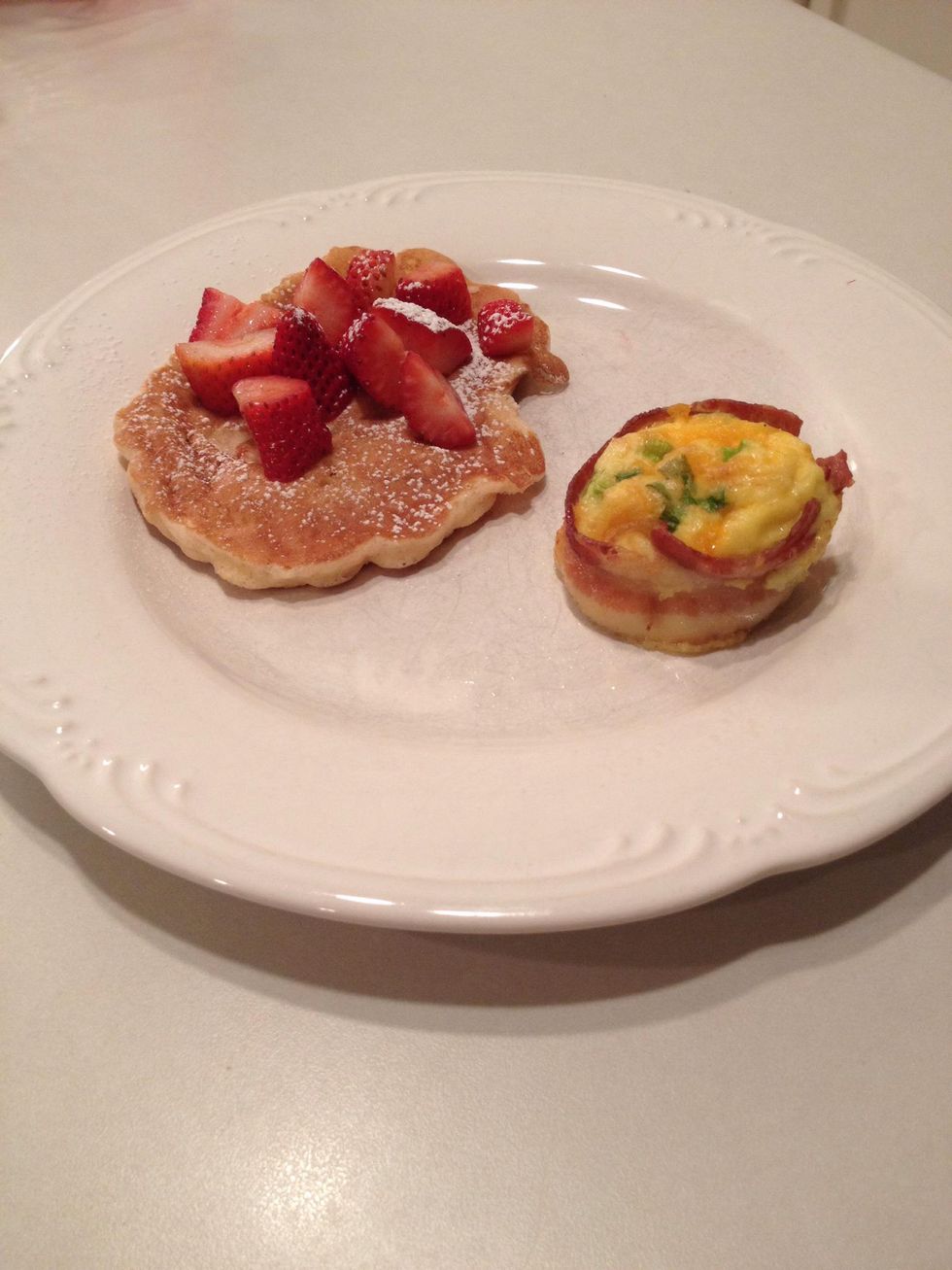 Add fillers to eggs. Since my kids are picky, I have some with ham, some with cheese, some with everything.