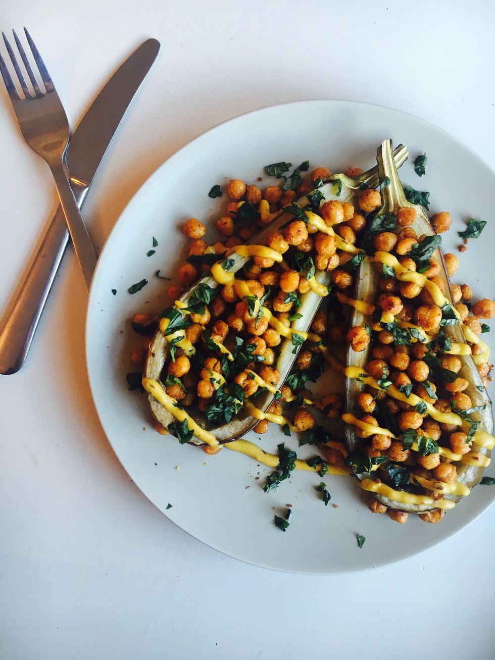 Make Baked Eggplant With Spicy Chickpeas (Vegan)