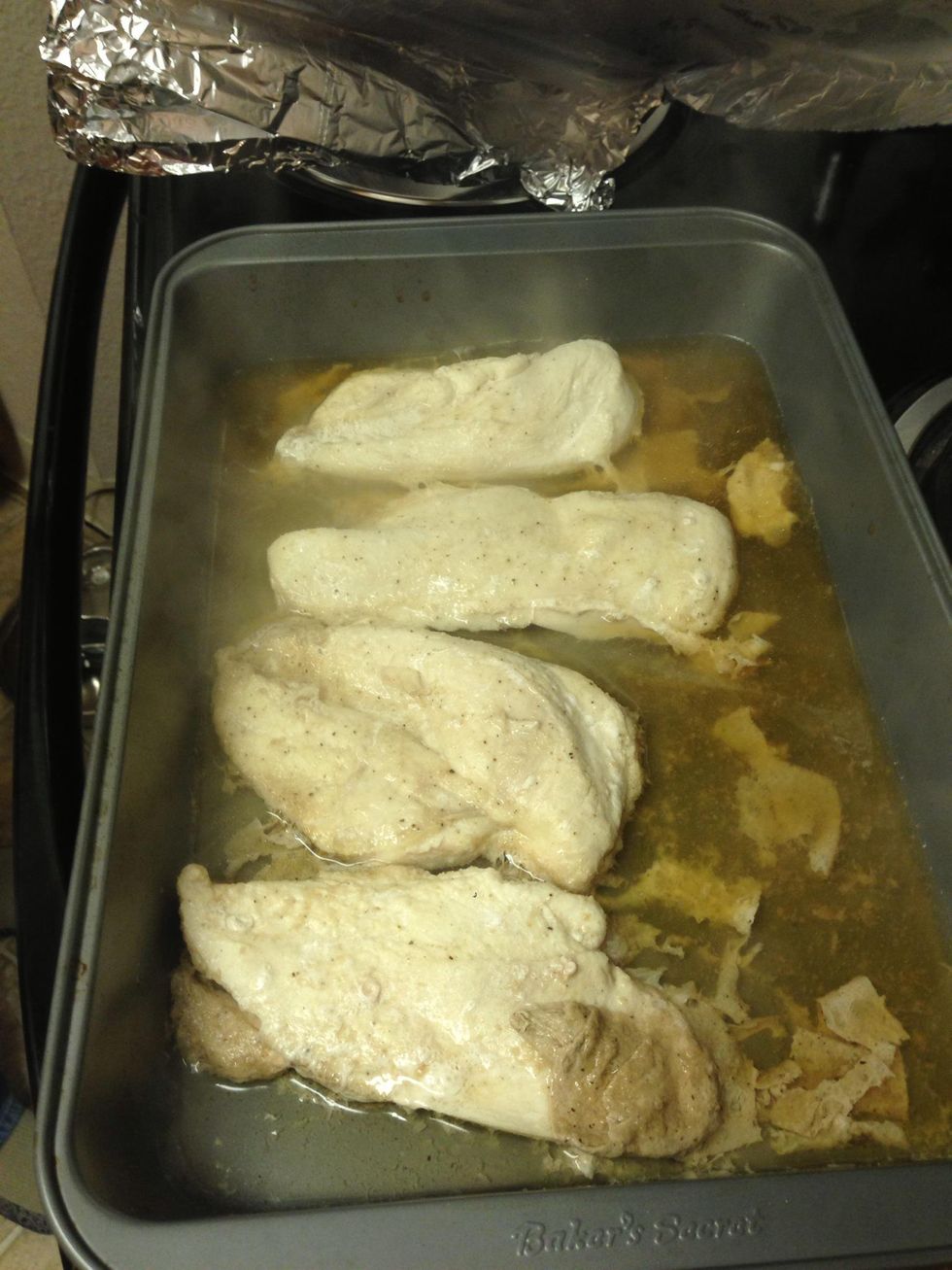 Cover the chicken with tin foil.