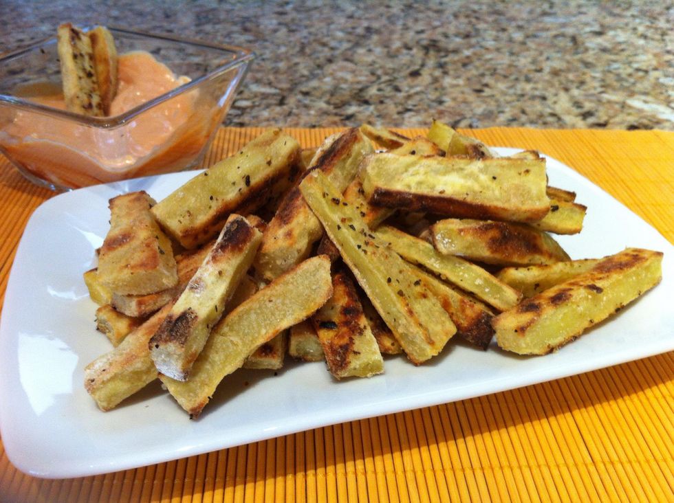 Layer on a cookie sheet, sprinkle with your favorite seasonings, and spray the tops with cooking spray.