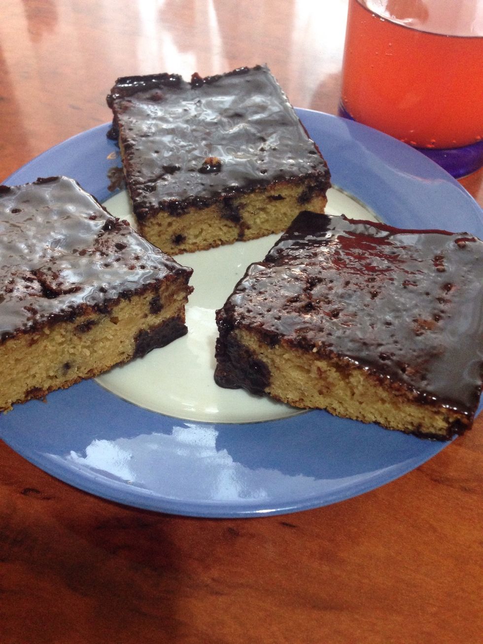 Pour into the greased and lined with parchment paper baking dish. Bake at 180C preheated oven for about 30 minutes
