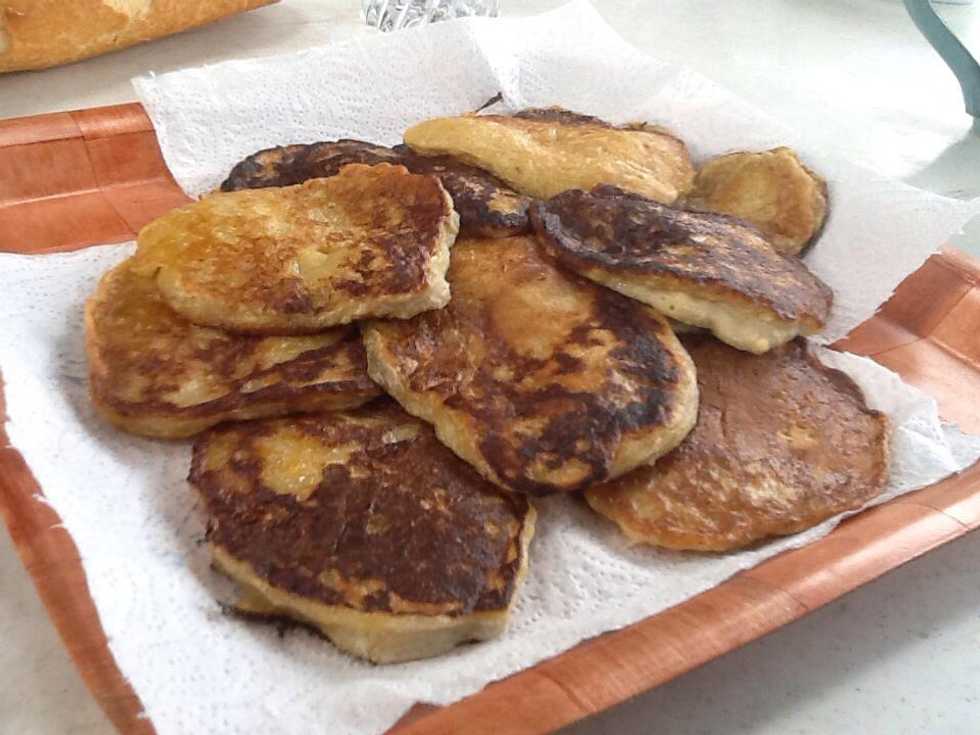 Add 2 eggs if you have 4 cups of bananas. If you only have 2, add 1 egg so that it won't stick to the frying pan